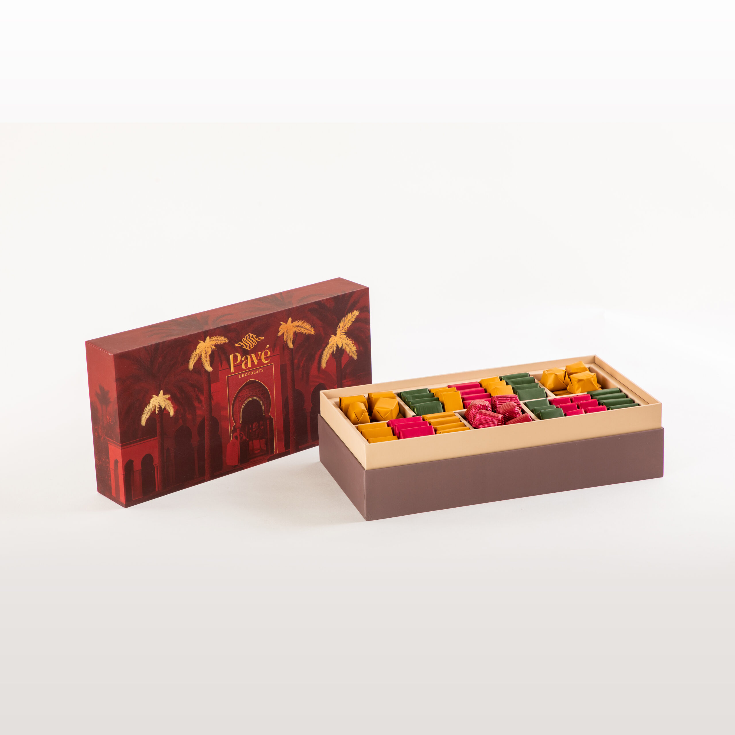 Un service de thé luxueux chinois garni d’un délicieux assortiment de chocolats Mix Chocolat au Lait et Noir