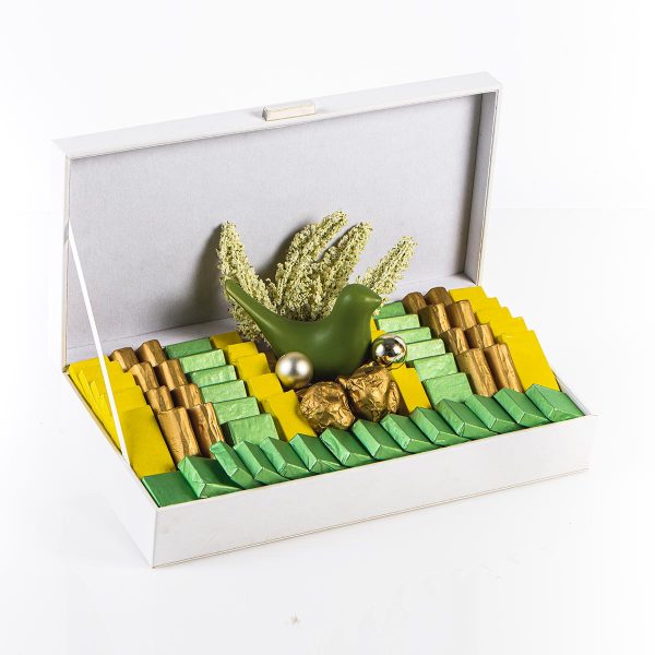 Boite blanche en simili cuir parfaitement Corporate . Mix Chocolat au Lait et Noir